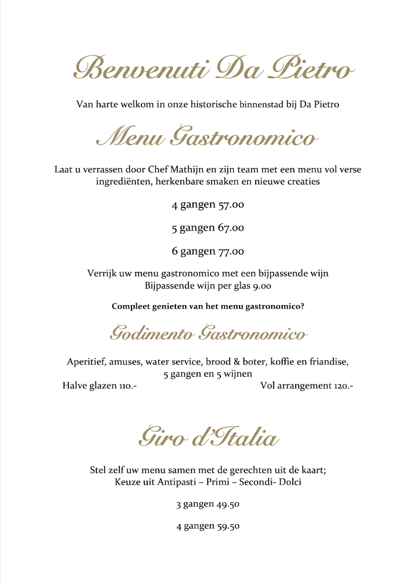 Welcome to Da Pietro, a cozy Italian restaurant nestled in the charming town of Elburg, Netherlands. Located at Vischpoortstraat 16, this eatery is known for its fine cuisine and inviting atmosphere. Patrons rave about the high-quality dishes, with many recommending the chef's special and unique combinations that surprise the palate.